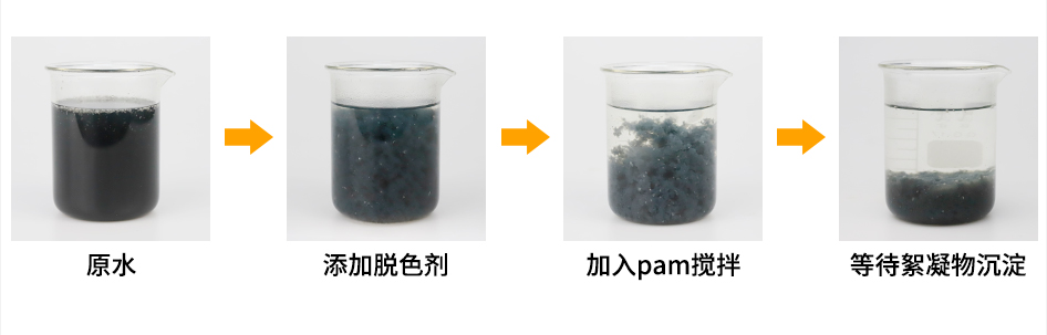 1、用10-40水稀釋本品,然后直接加入水中,攪拌數(shù)分鐘后進(jìn)行沉淀或氣浮,即可得到脫色清液。